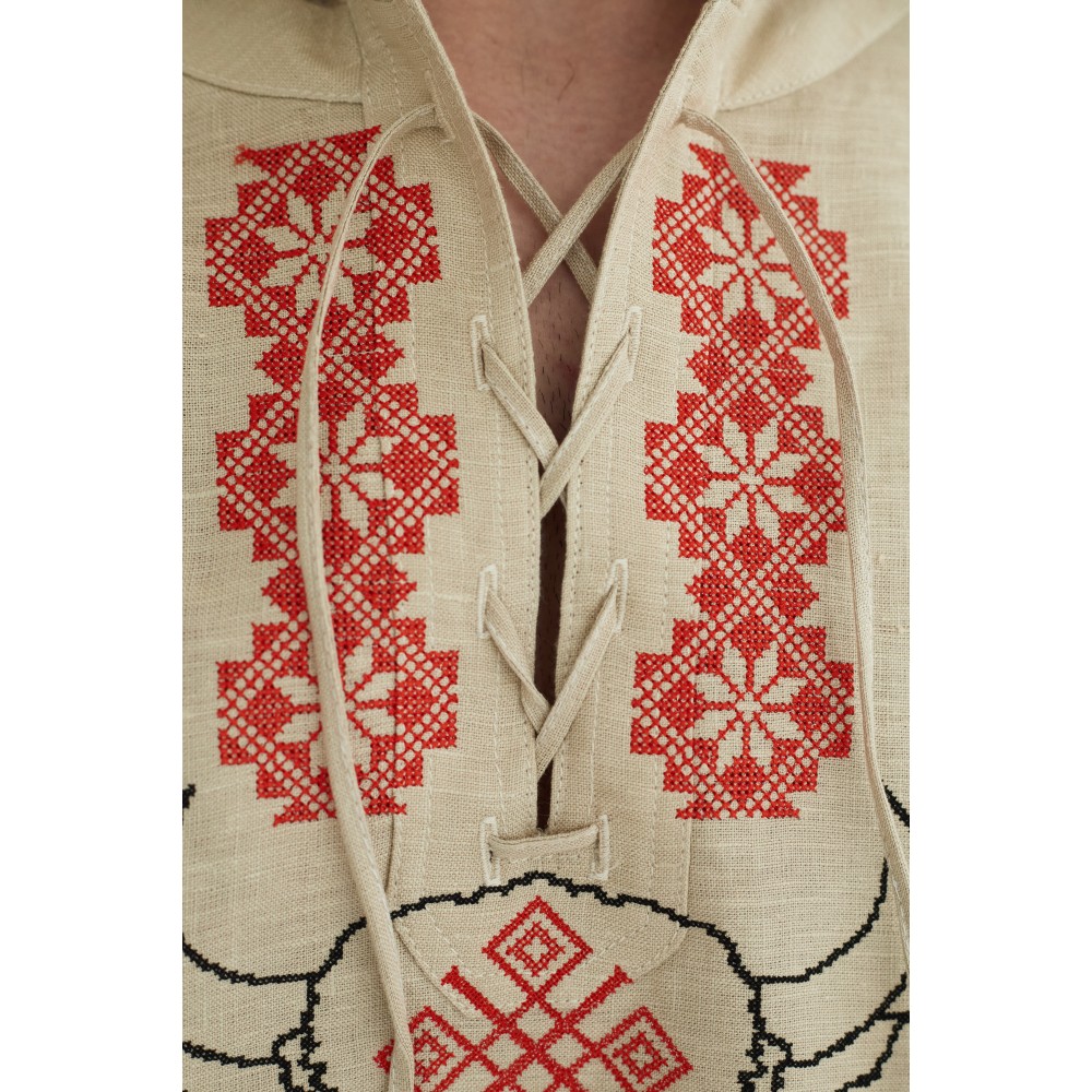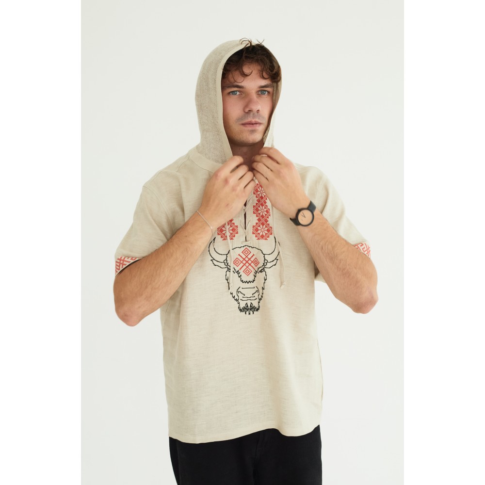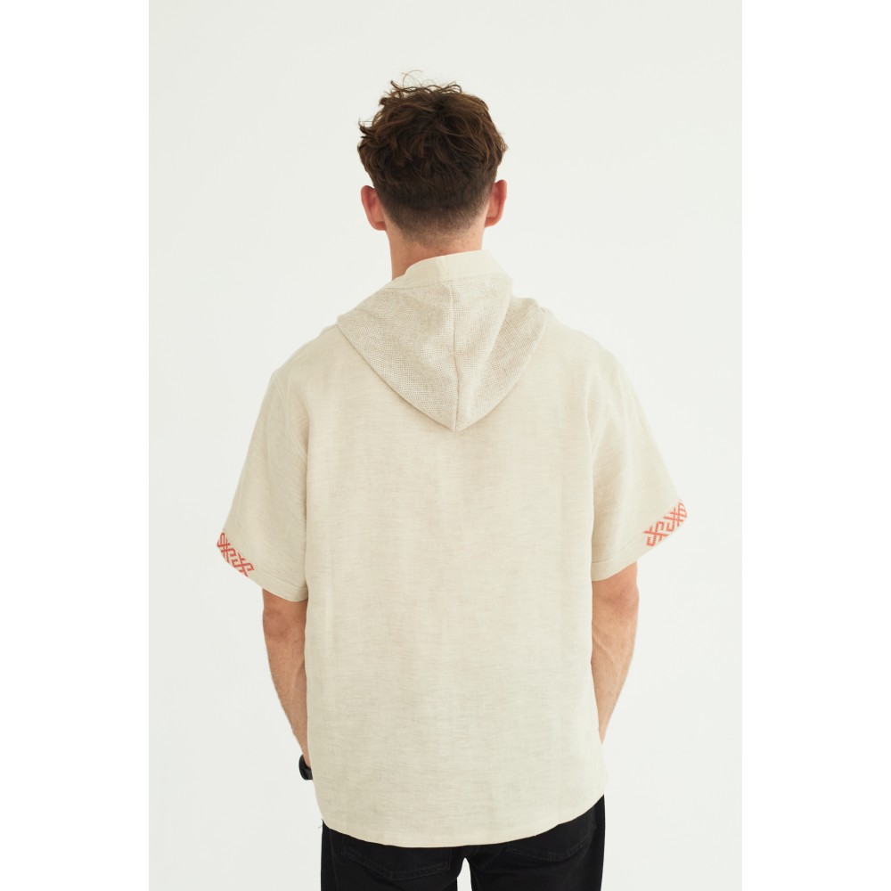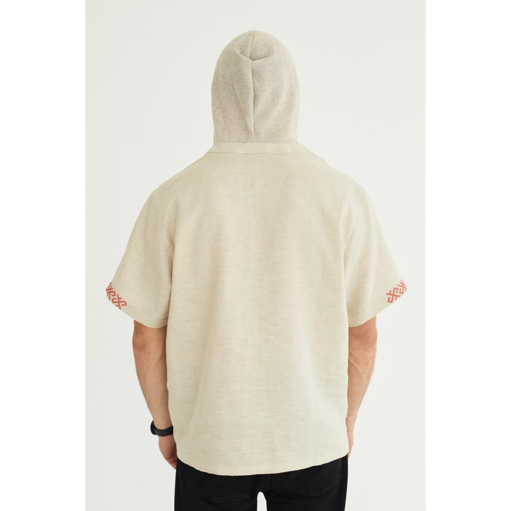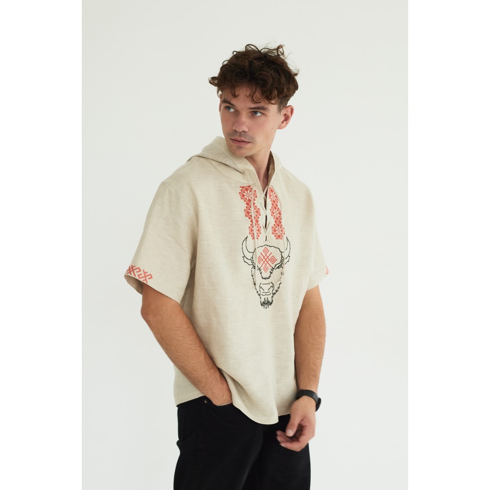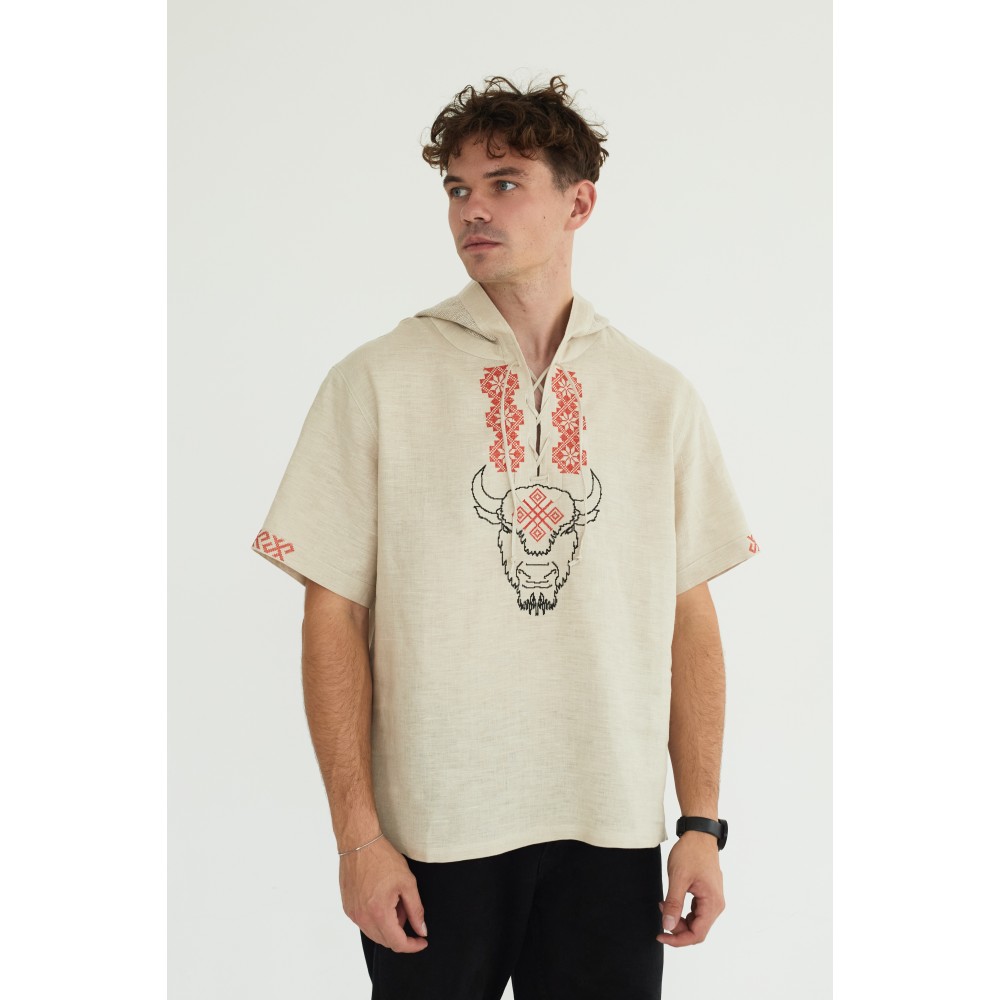 Льняная рубашка с капюшоном "Зубр" в натуральном цвете льна