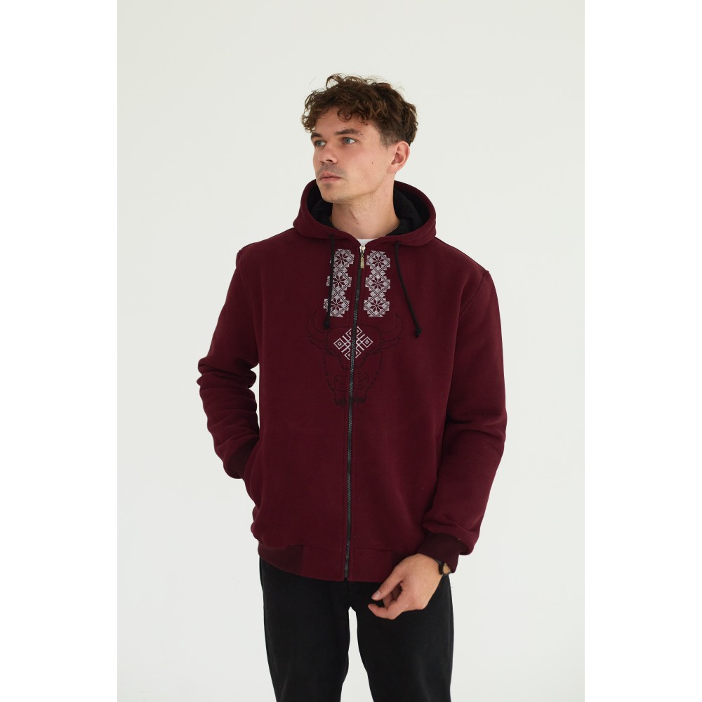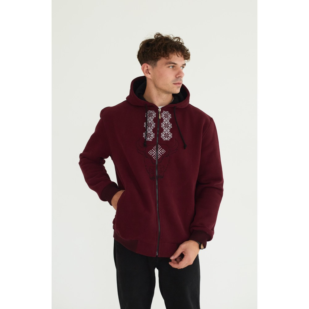 Худи мужская в бордовом цвете "Зубр"
