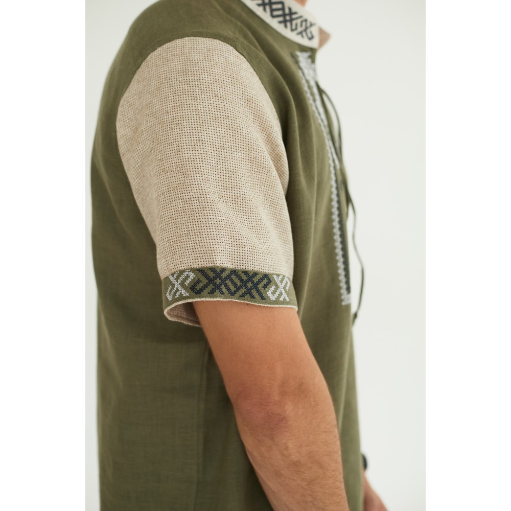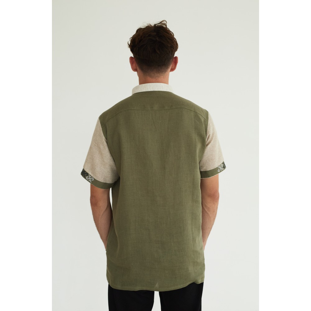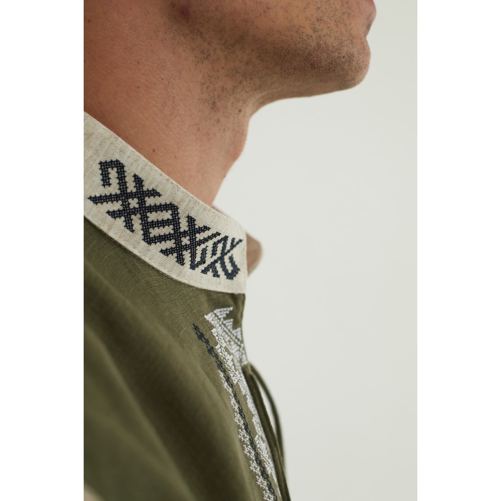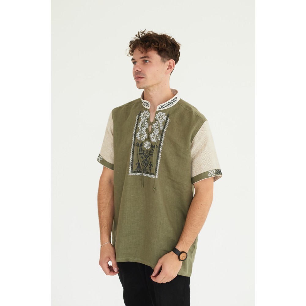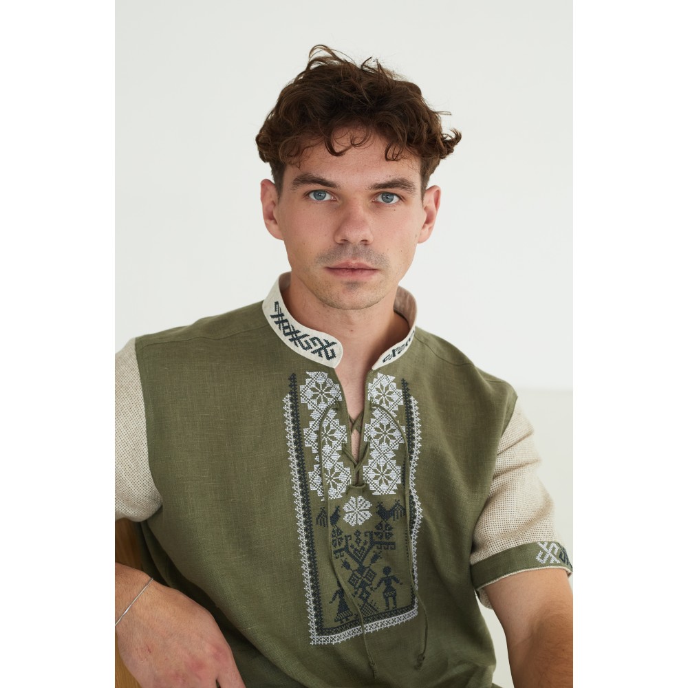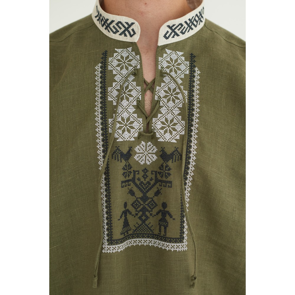 Льняная рубашка в цвете хаки "Дерево Жизни"