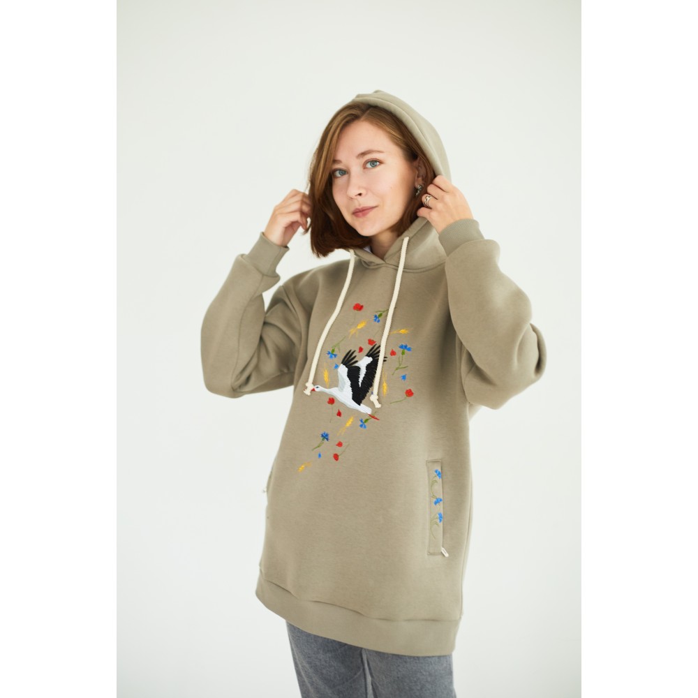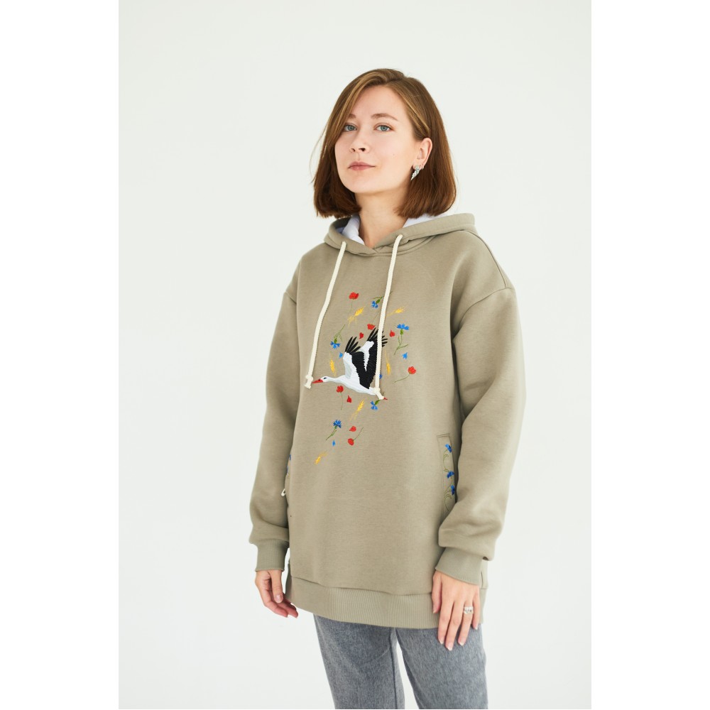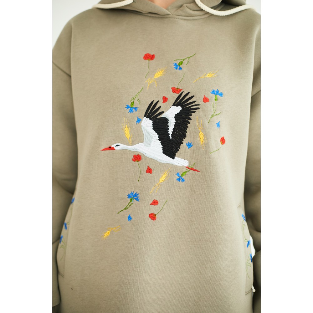 Оверсайз в оливковом цвете "Бусел в композиции цветов"