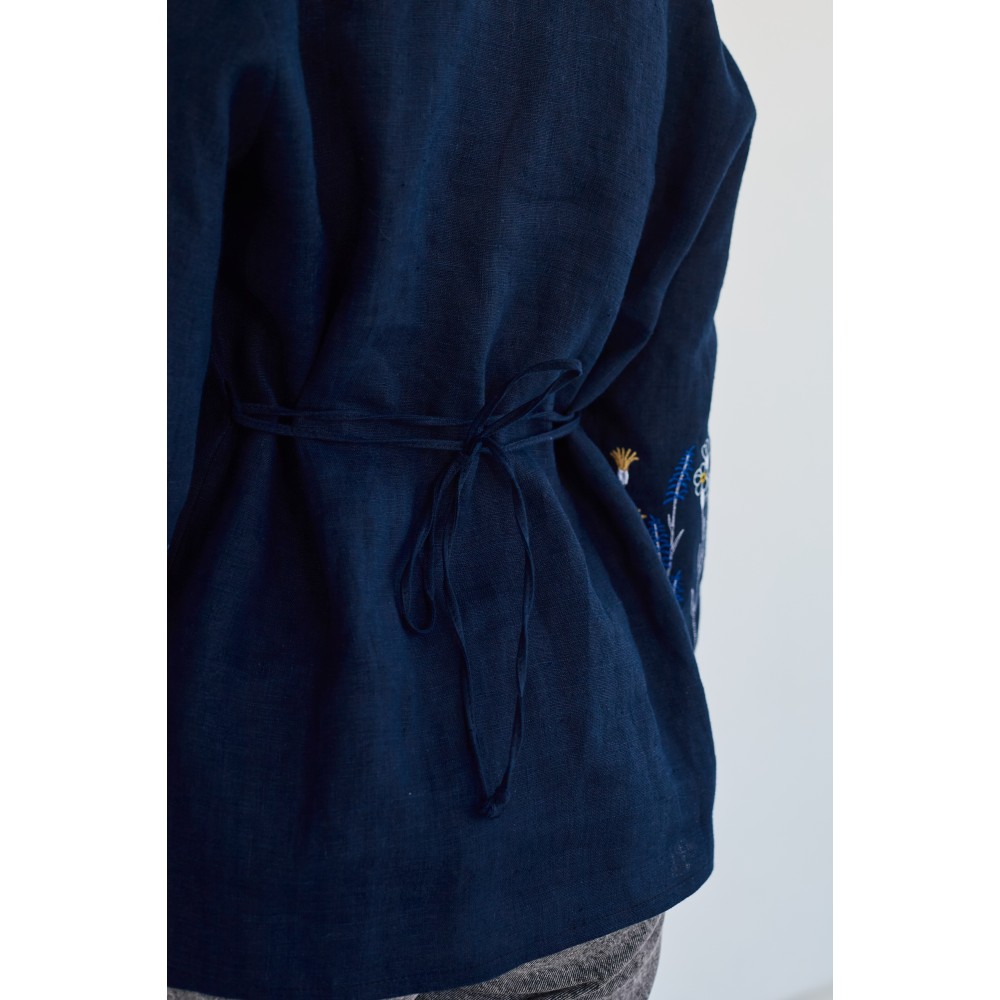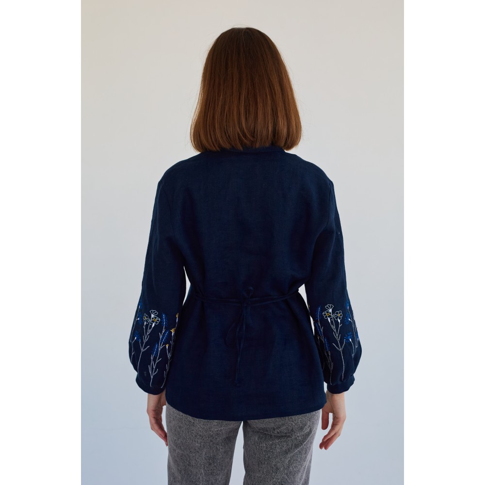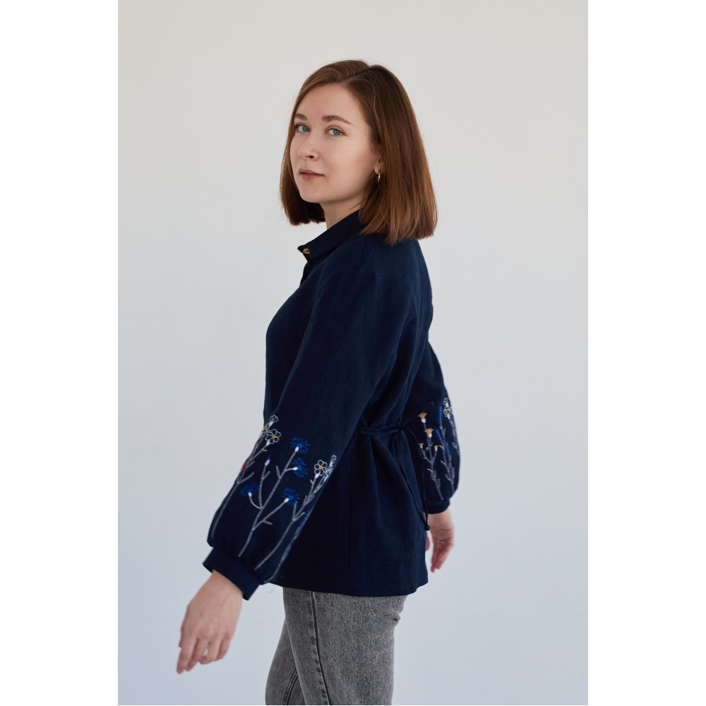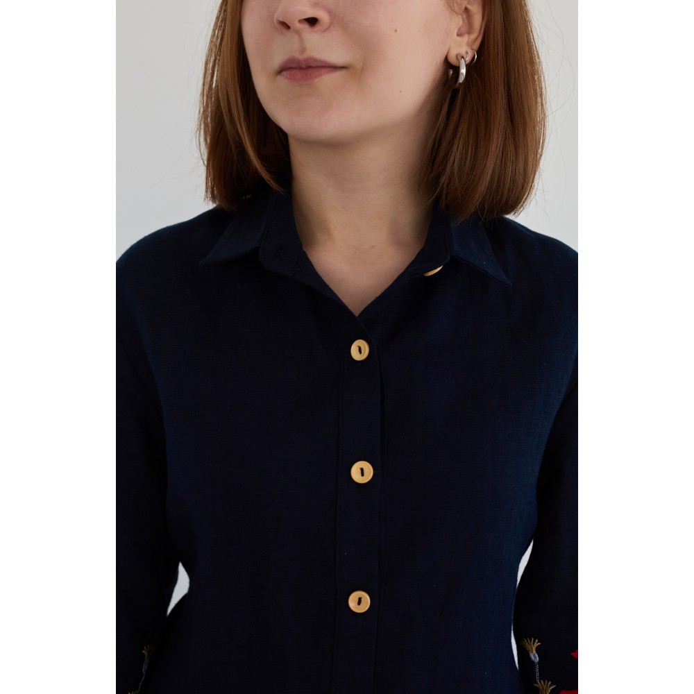 Льняная женская рубашка в темно-синем цвете (манжет фонарик)