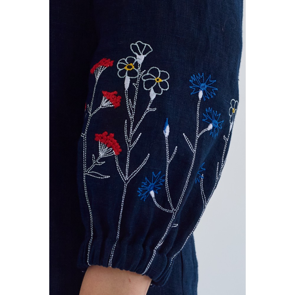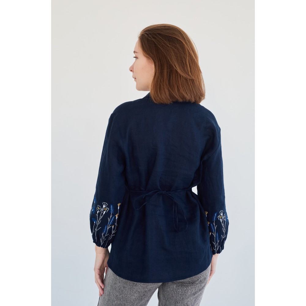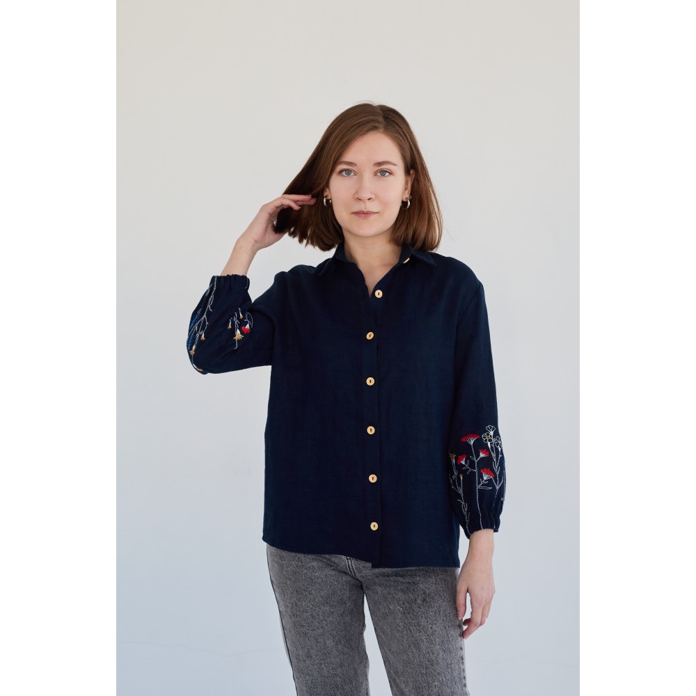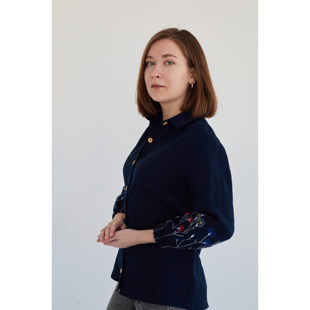 Льняная женская рубашка в темно-синем цвете (манжет резинка)